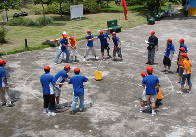 所有隊員不能用身體部位接觸水桶。水桶離開安全區(qū)域后不能接觸地面。充分利用提供的物質(zhì)資源,嚴格執(zhí)行項目規(guī)則。必須在規(guī)定的時間內(nèi)完成。