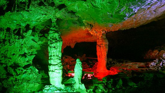 14:30—16:40 乘船約10分鐘至觀音洞景區(qū),至依山臨湖風(fēng)水極佳的觀音榭參拜千姿百態(tài)的觀音法相,沿崎嶇的好漢坡上行游覽乳源洞,欣賞形態(tài)各異的天然鐘乳石——神鶴獨(dú)舞、瑪瑙石、涌泉相報(bào)、魚躍龍門、神锏、神鷹懺悔、三羊開泰等。至速度滑降索道起點(diǎn),感受特種兵從天而降的暢快,欣賞嬉樂園里驚險(xiǎn)刺激的鐵壁飛車表演,摩托車和自行車在騎乘高手的演繹下絕對令你瞠目結(jié)舌。