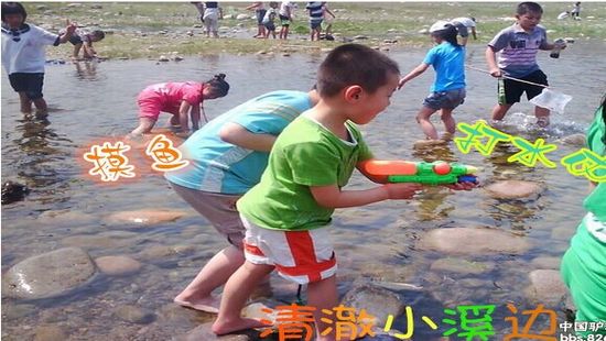 吃的飽飽的恢復(fù)了體力,帶上你的寶貝,跟著我們一起來到清澈溪邊摸魚打水仗(自帶水槍)。放心!水很淺,絕對安全;