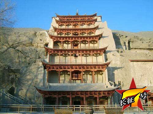 莫高窟位于敦煌市東南25公里處,開鑿在鳴沙山東麓斷崖上。南北長約1600多米, 上下排列五層、高低錯落有致、鱗次櫛比,形如蜂房鴿舍,壯觀異常。它是我國現(xiàn)存規(guī)模最大,內容最豐富的古典文化藝術寶庫,也是舉世聞名的佛教藝術中心。1987年12月被聯(lián)合國教科文組織列為世界文化遺產(chǎn).